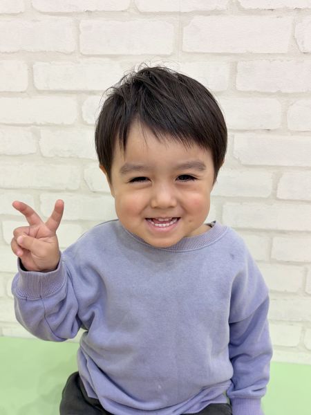 れいやくん 3さい✨とってもにこにこなれいやくん☺️丸みのあるナチュラルなショートにカットして、さらにかわいくなりました🌟終始ごきげんさんでとっても上手にできました👏前髪は短めですっきりしたね!!ブログのご協力ありがとうございました😊