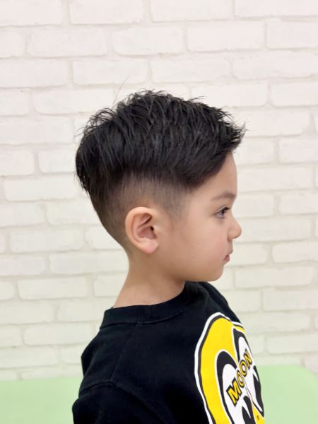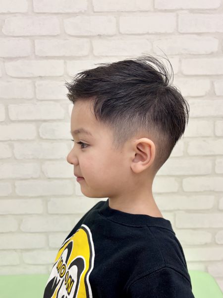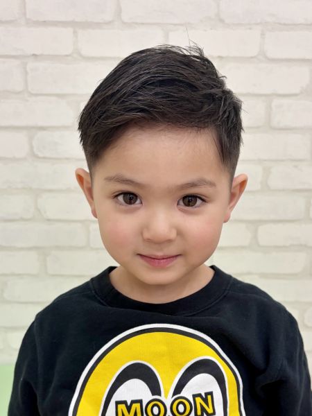 イーサくん4さい⚡️とってもイケメンさんなイーサくん!😎今回はフェードにスタイルチェンジして、よりクールなスタイルにしました✂️大人顔負けなビシッとフェードなスタイルになりました!12mmから3mmで刈り上げて、トップは立たないくらい、前髪はおでこ半分くらいまでカットしてます💇長い時間バリカンを頑張ってくれてありがとう!ブログのご協力ありがとうございました😊