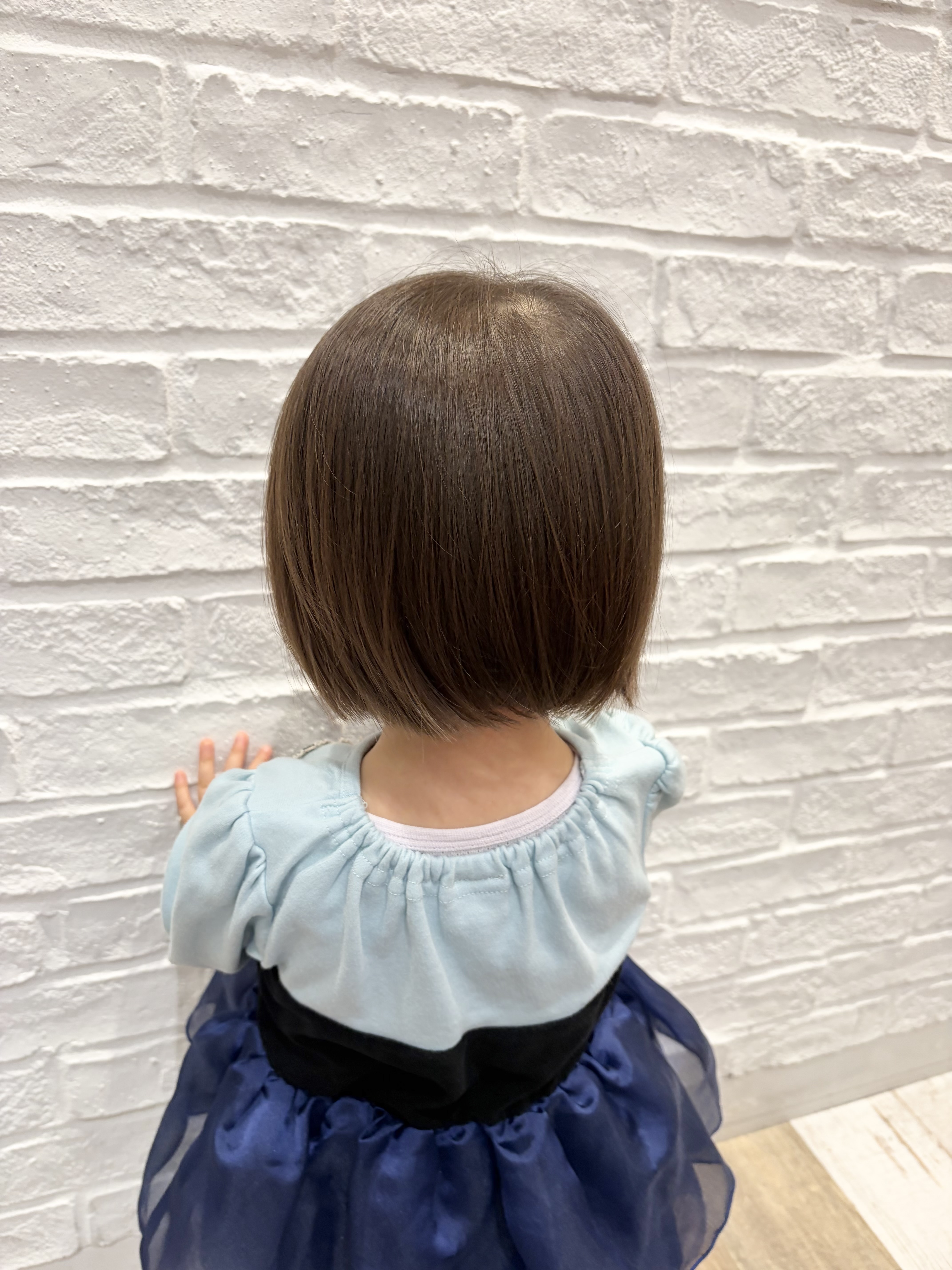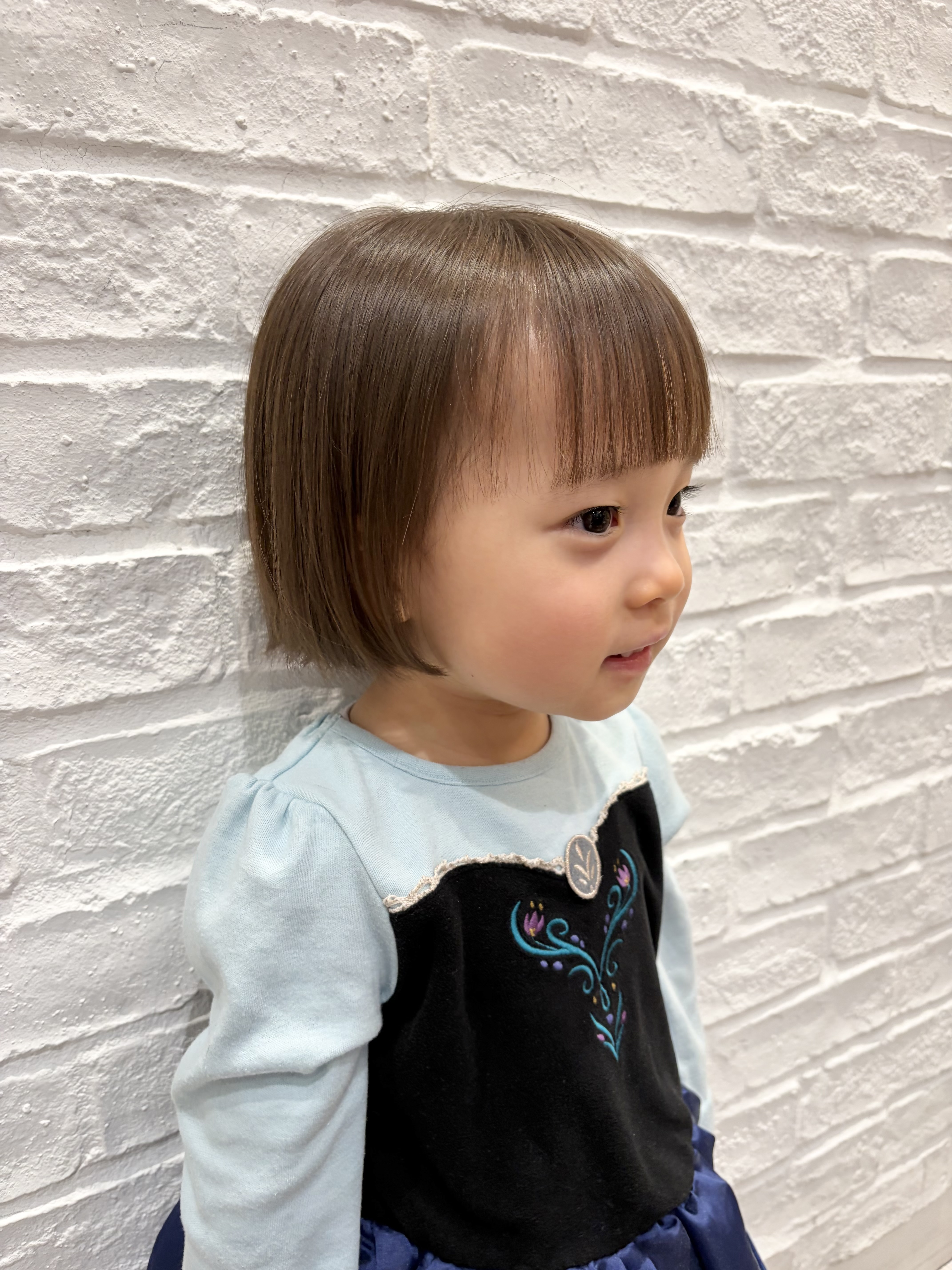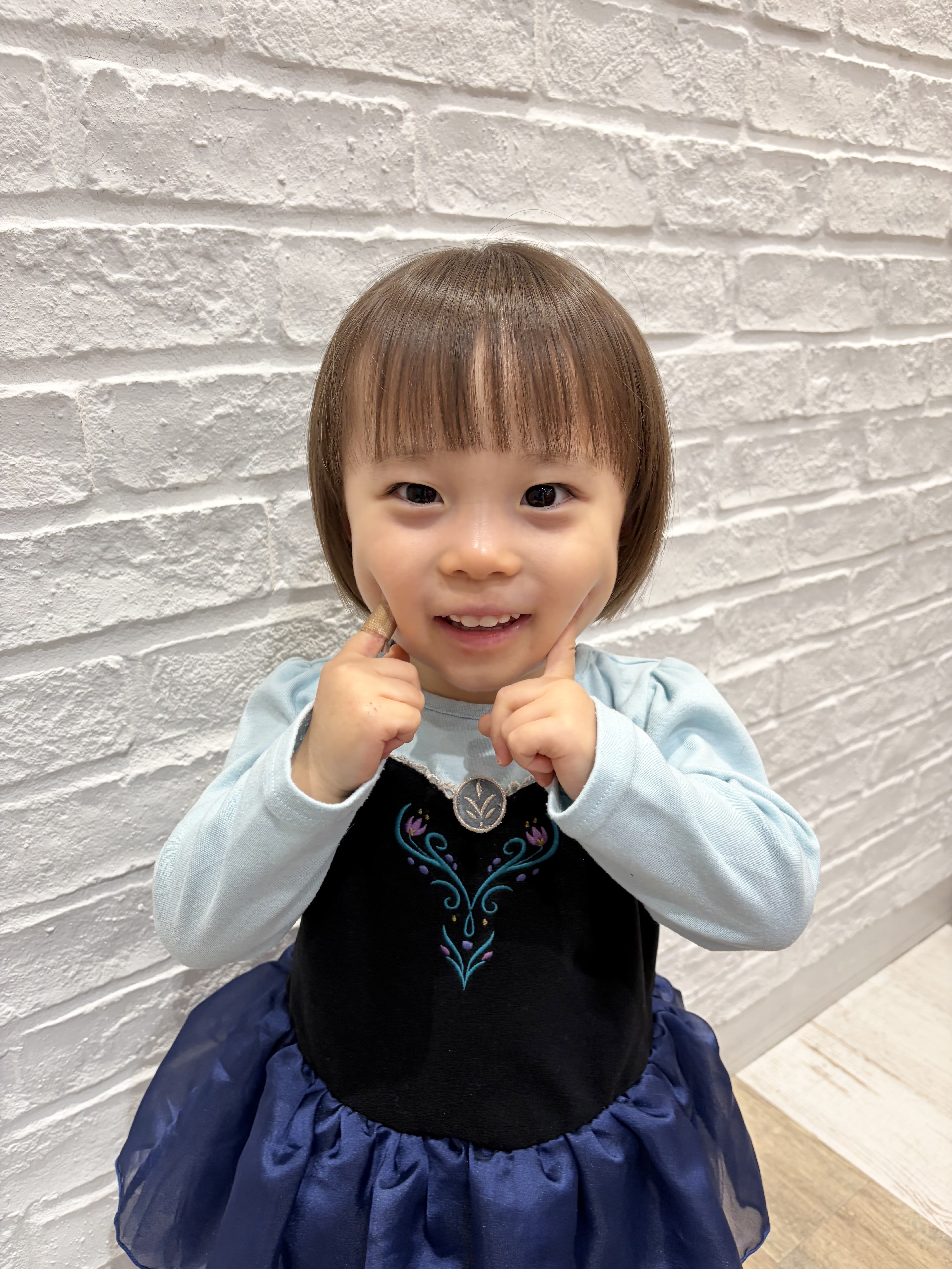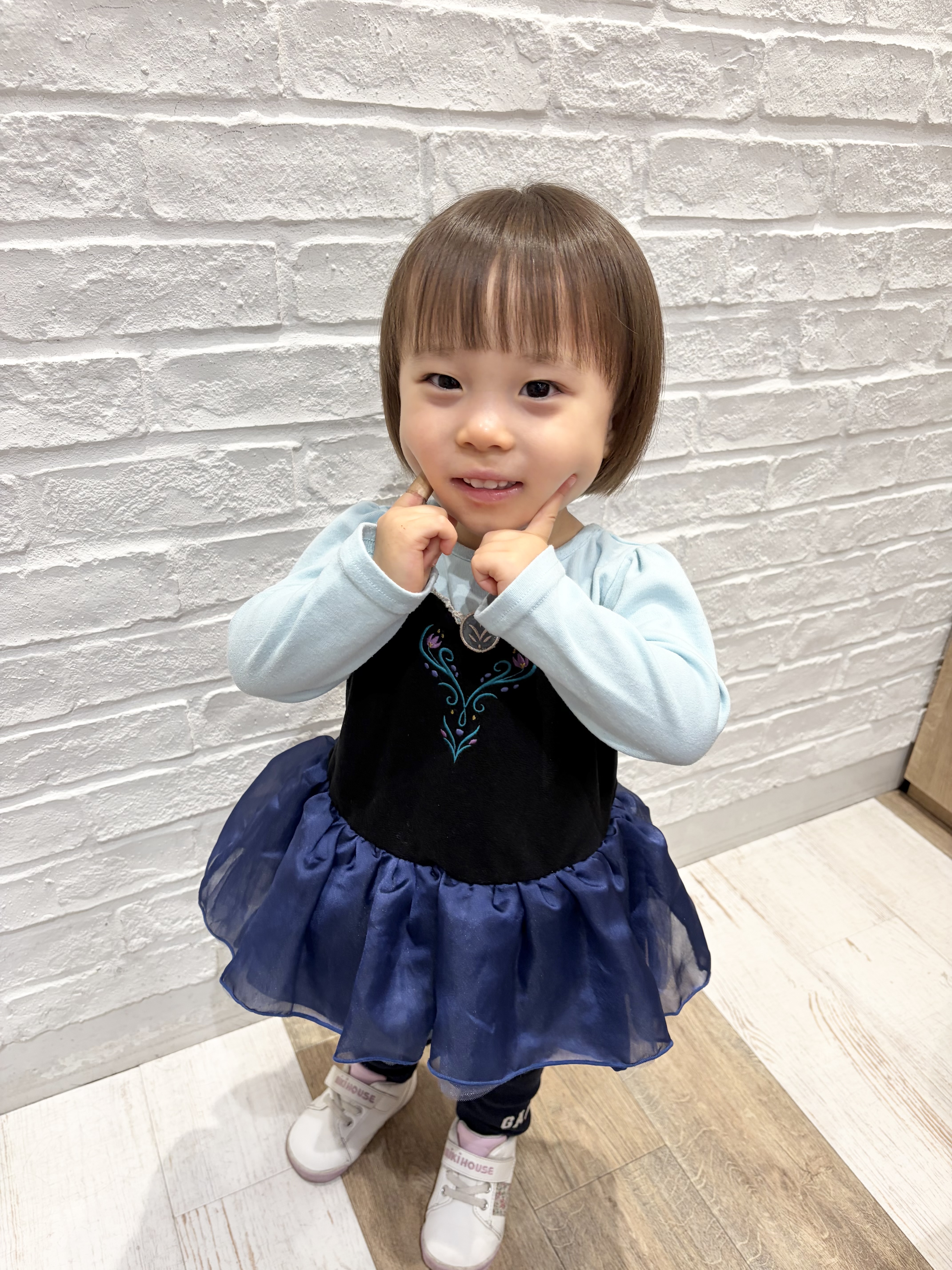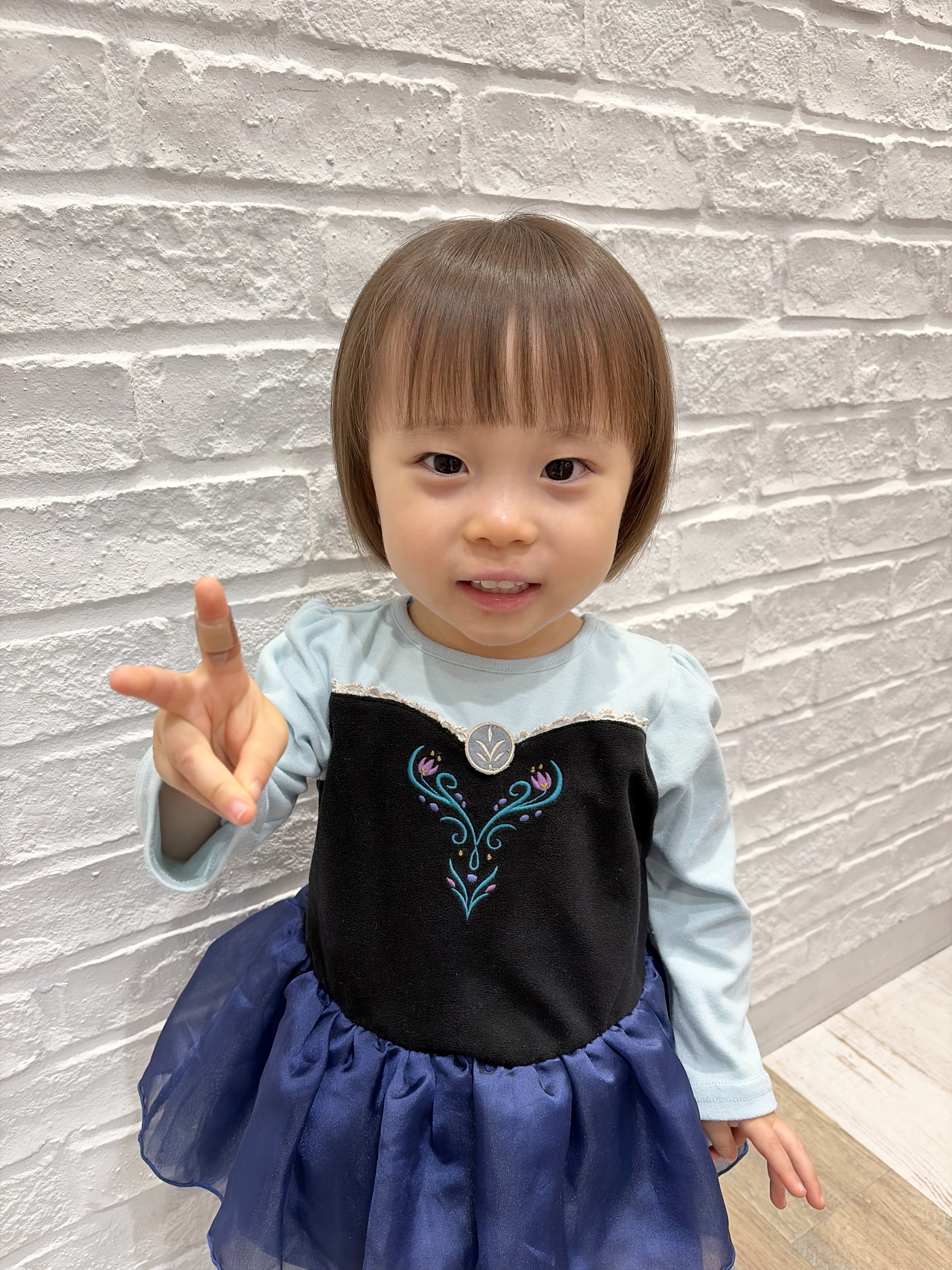 みなみちゃん 2さいお筆を作る為に伸ばしてくれた髪の毛をバッサリボブヘアに大変身♡前髪のぱっつんとも相性バッチリでとってもお似合いです多少クセもありますが、可愛くまとまりが出るようにカットさせていただきました可愛いアナ雪のドレスとハイポーズステキなモデルさんをありがとうまたお店で待ってるね!! お写真のご協力ありがとうございました。またのご利用お待ちしております!
