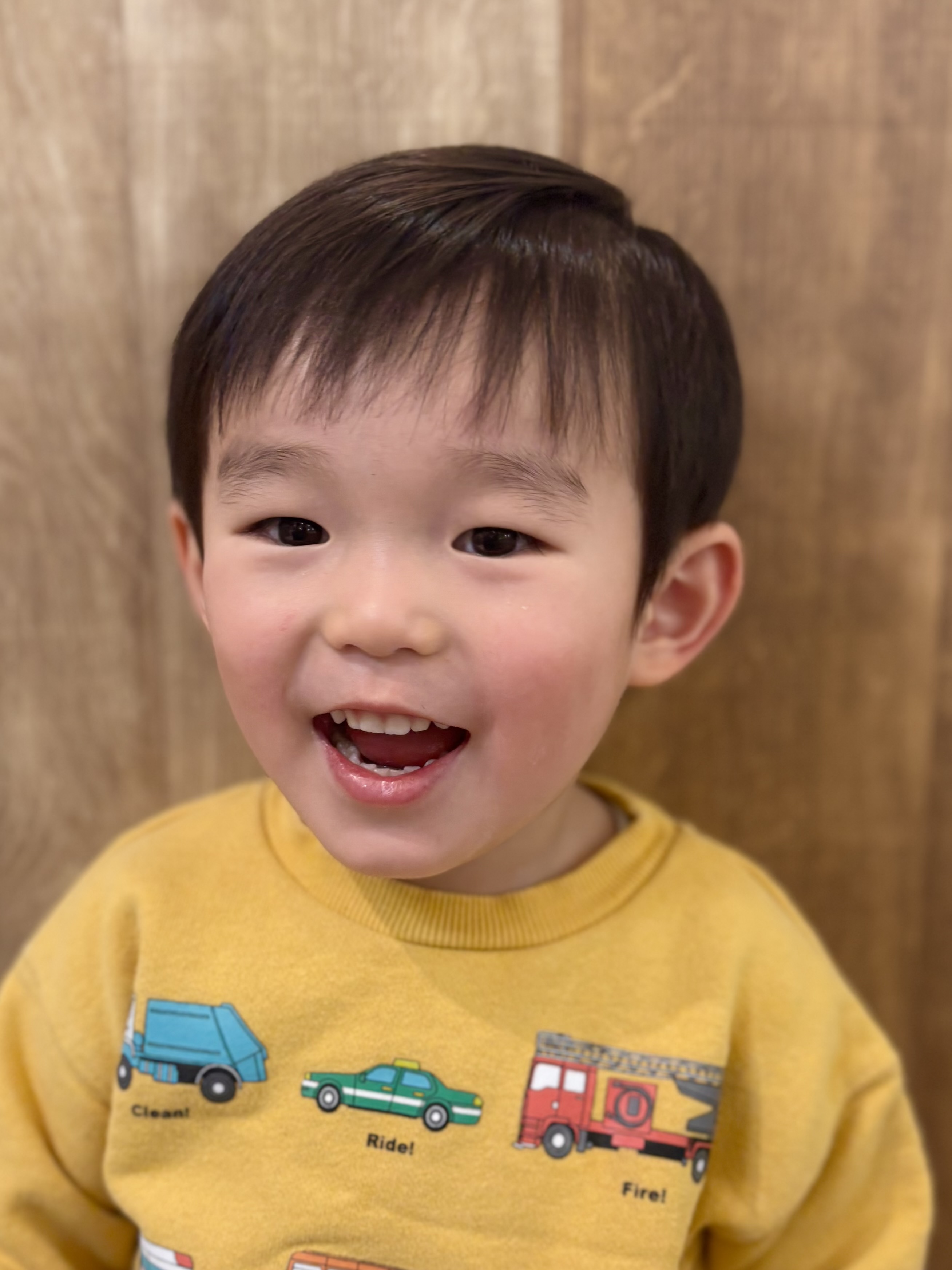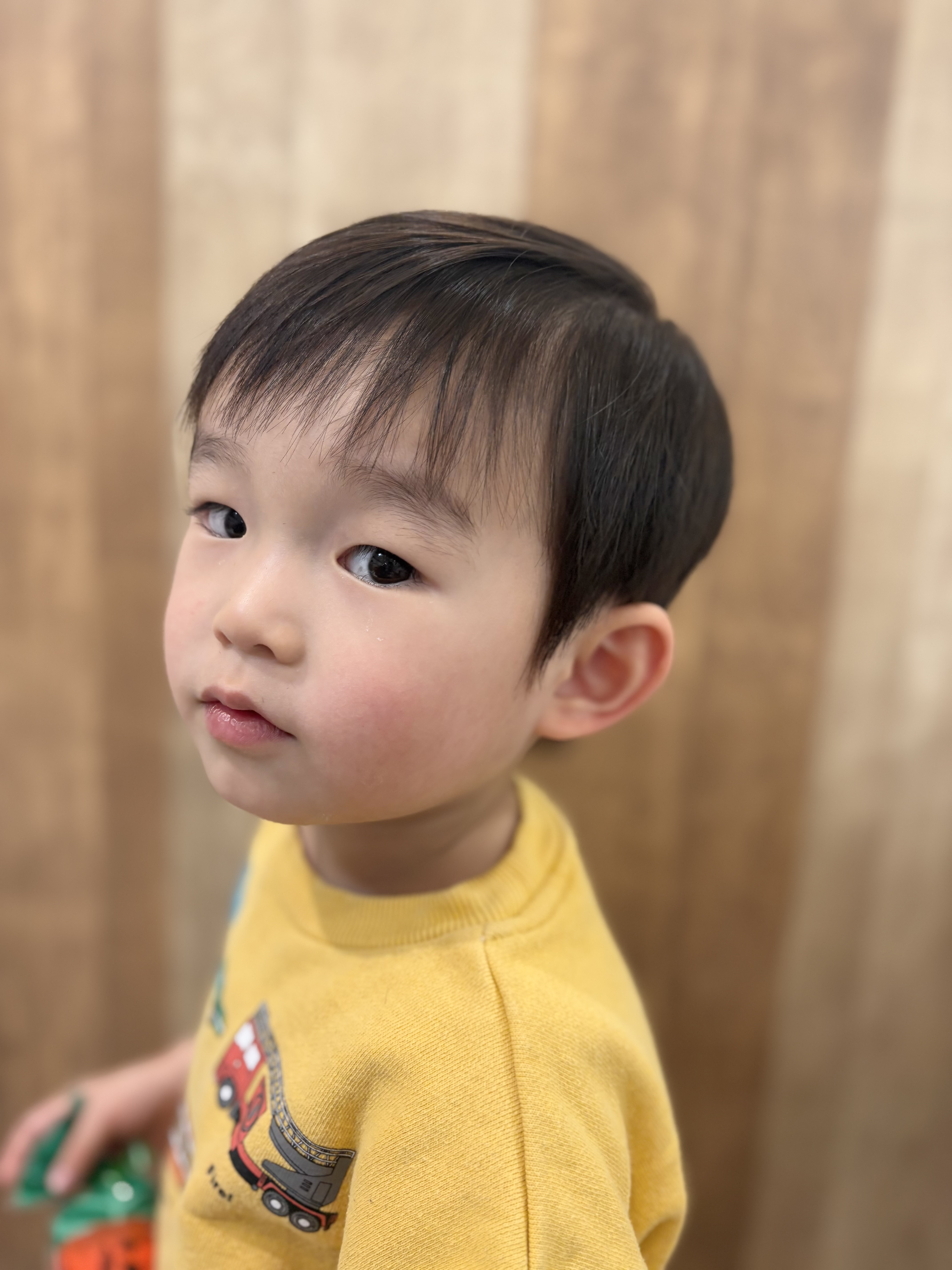 はるくん お耳はスッキリ出して、前髪はバランスが悪くならない程度で、短く自然に切りました お利口さんにカットさせてくれてありがとう♡とってもかっこいいよ 下の赤ちゃんがいるのにご協力ありがとうございました♪またのご来店を心よりお待ちしております。