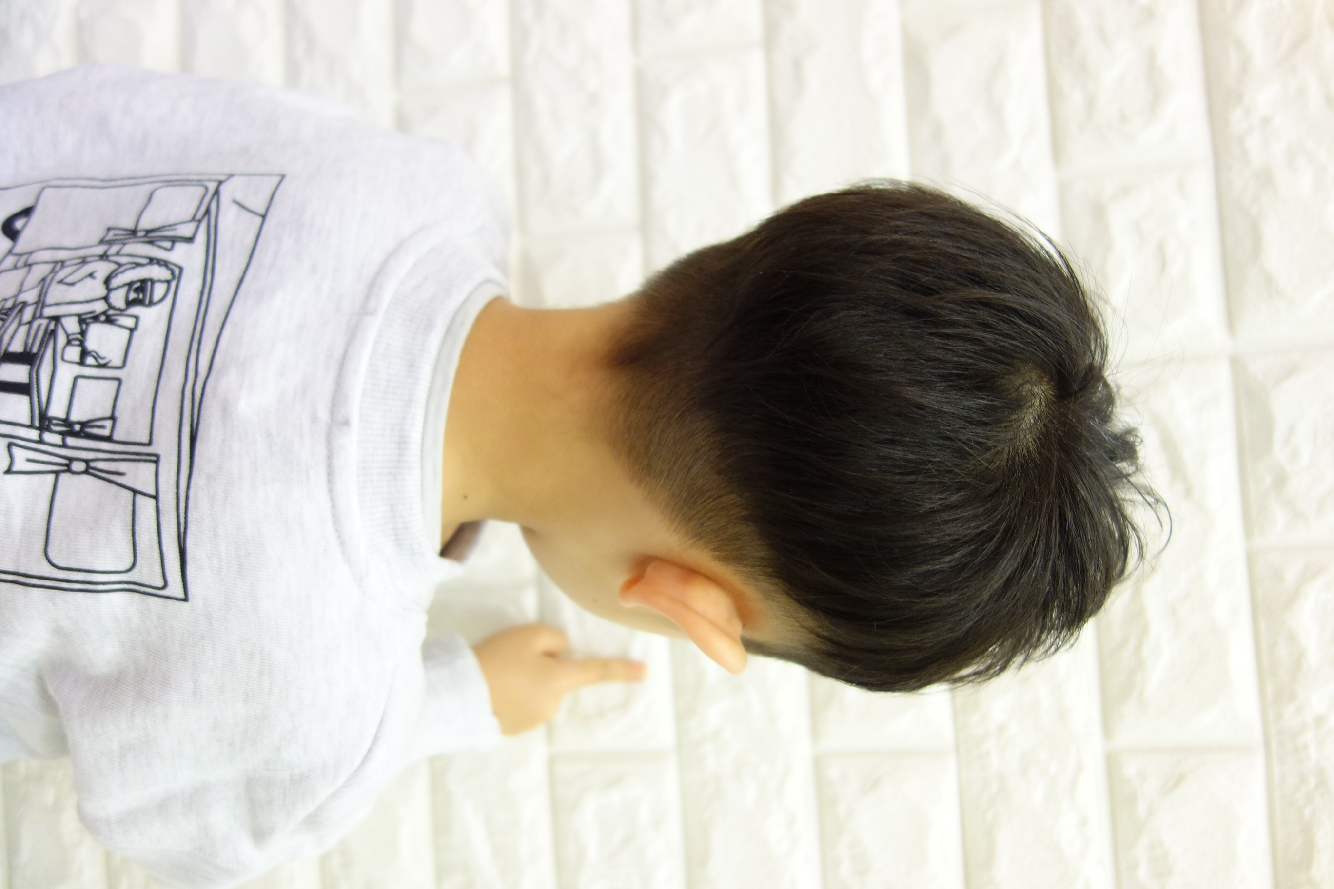 そうすけくん 6mmで一周バリカンいれました。前髪はカッコよくナナメにしました。とっても上手にできたね。撮影も協力してくれてありがとうまたいつでもチョッキンズに遊びに来てね。お姉さんみんなで待ってるよ