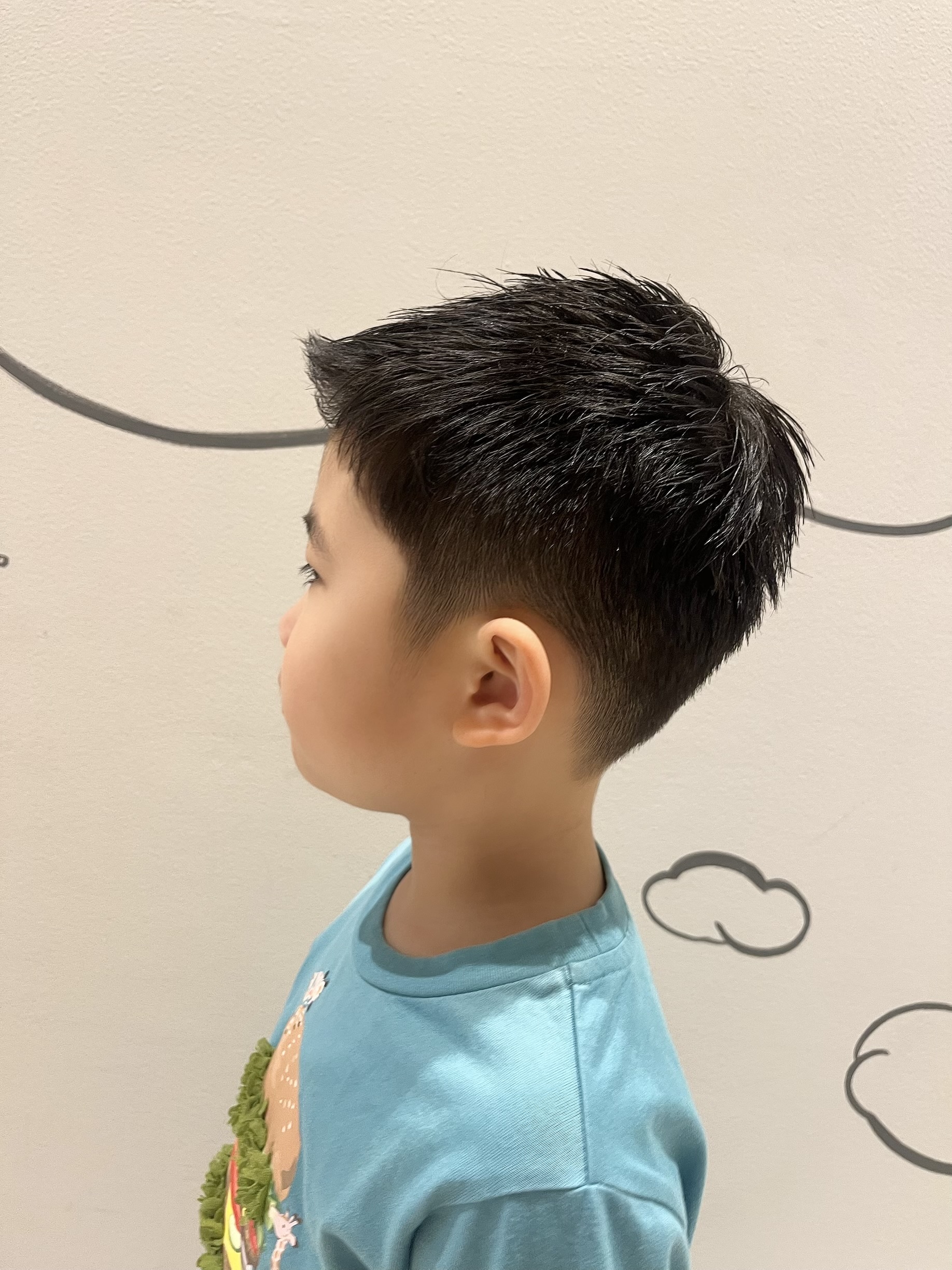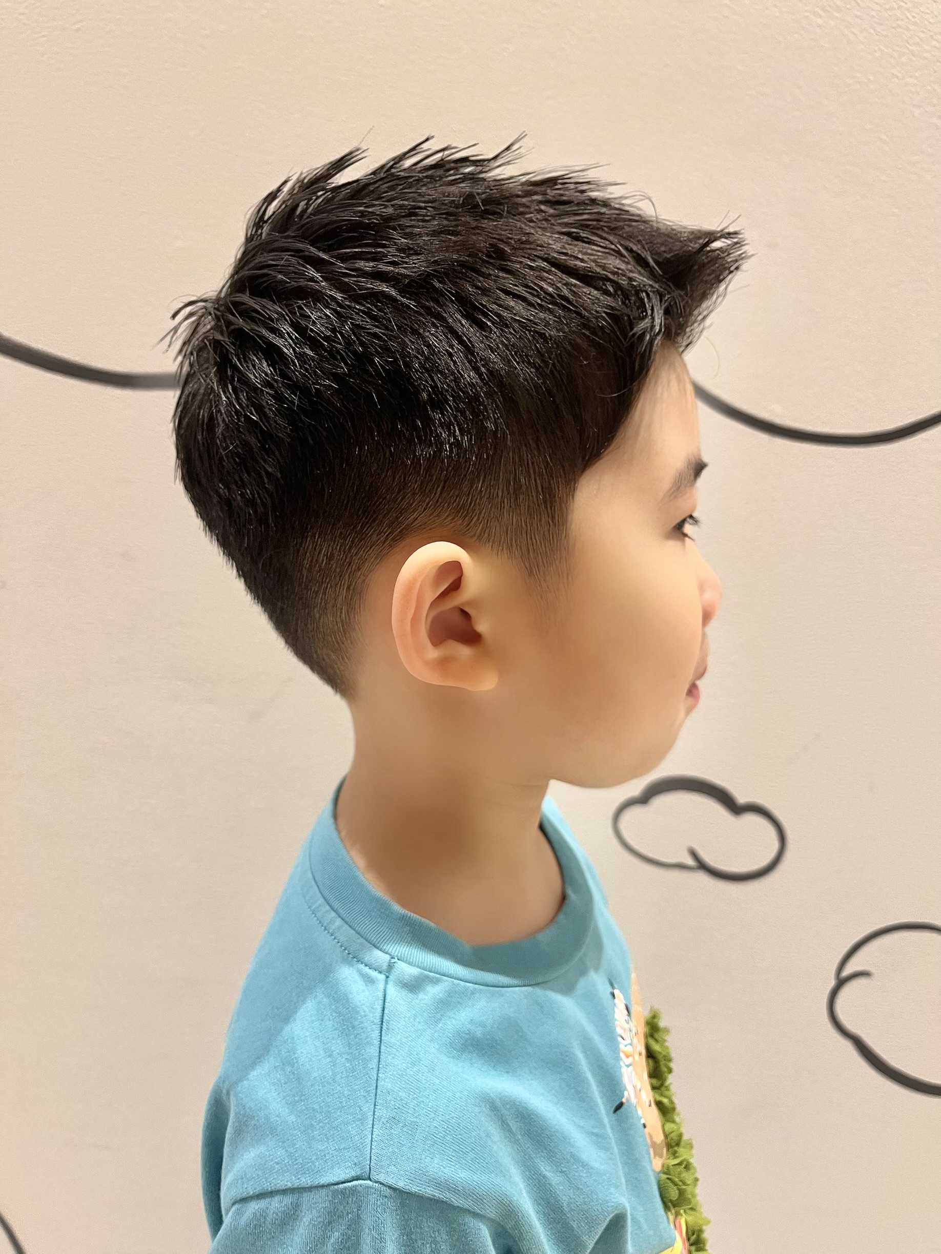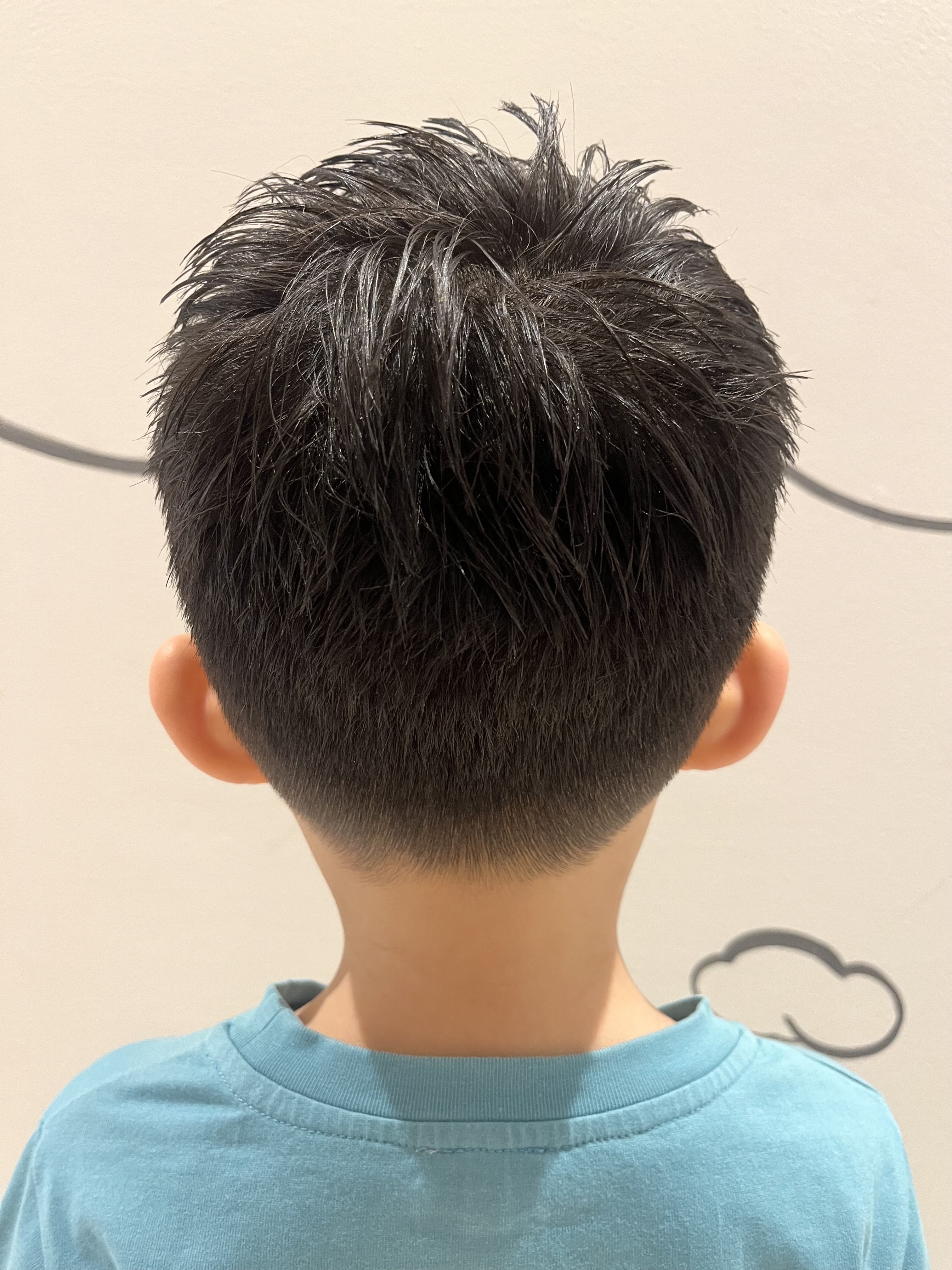 ベビーちゃんの時から常連さんのあやとくん✨ もみあげと襟足メインで3㎜をいれた低めのフェードスタイルにしてみました💈いかつくならず、品のあるベリーショート✨ウェット感のあるワックスをつけたので、あやとくんの黒髪が映えて、とってもかっこいいです🥺🌸 いつもチョキ友のご協力ありがとうございます😊またお待ちしております。