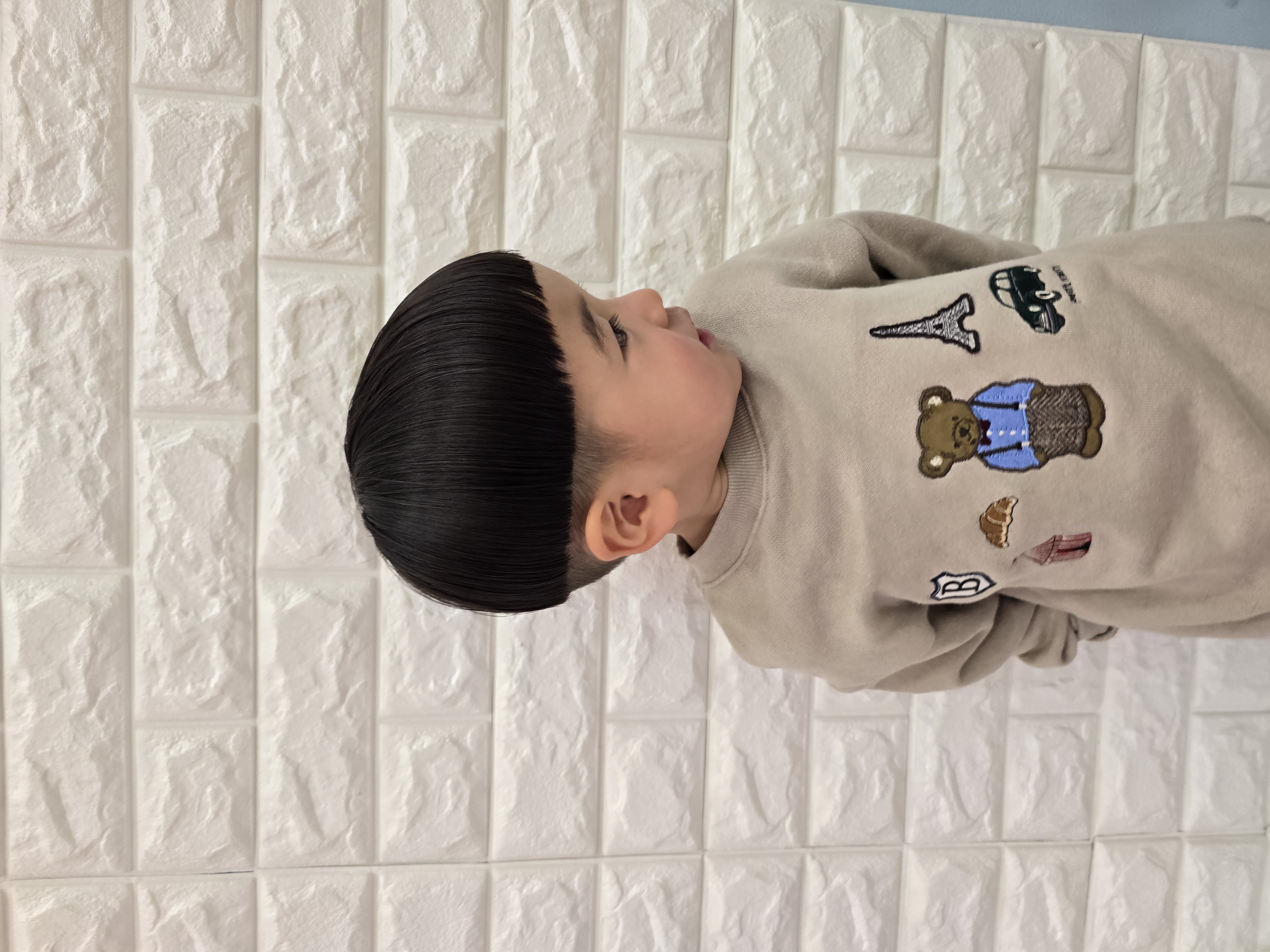 とあくん 2歳 1周6ミリのバリカンで中を刈り上げてマッシュルームカットにしました。とってもっとっても上手にできて可愛かったです♡お写真も車から降りて写真ブースでパチリ📸 お写真のご協力ありがとうございました!