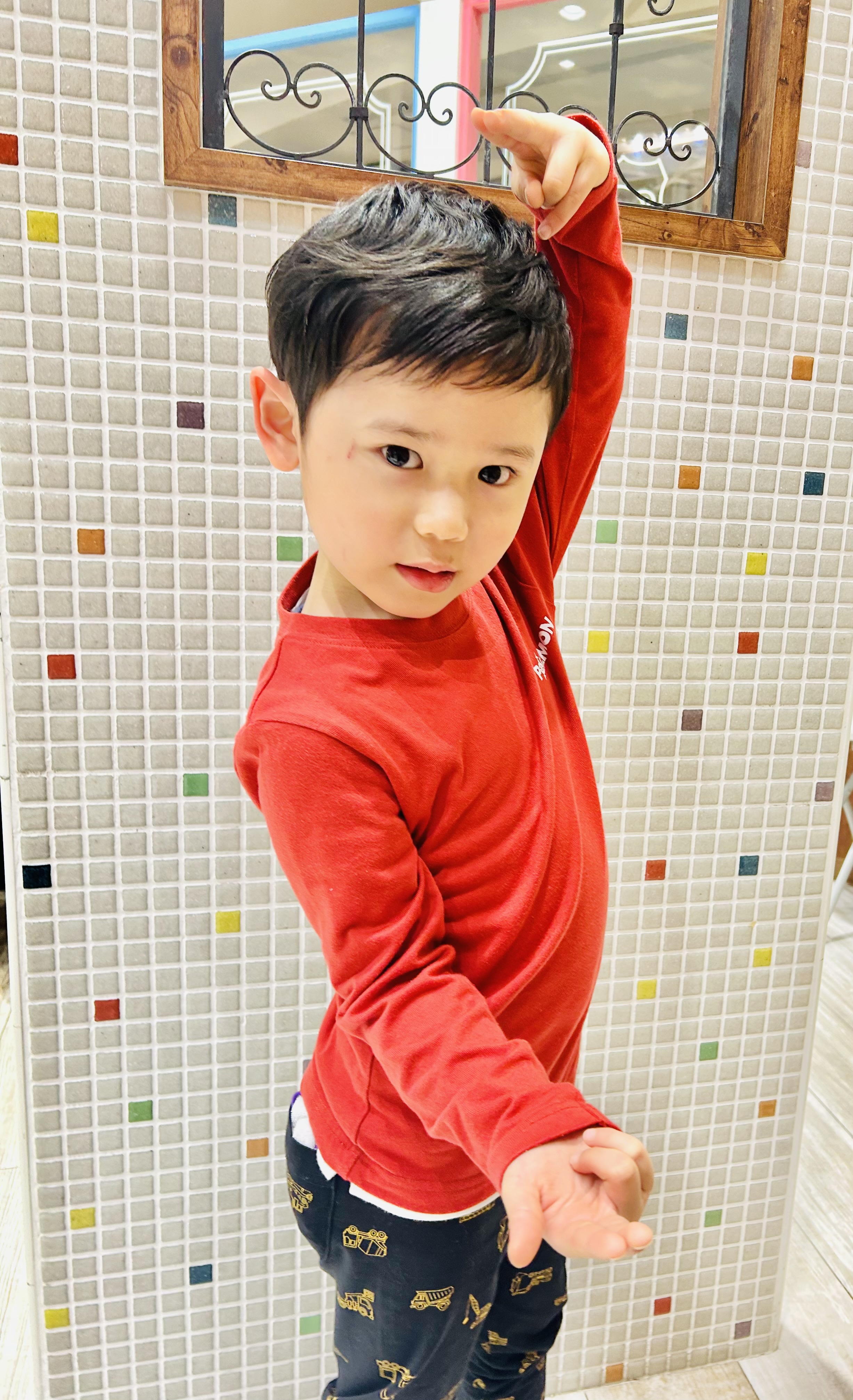 えいと君 5歳 かわいいくせ毛を生かしたナチュラルなショートスタイルワックスやオイルでセットするとくせ毛が良い感じに動きをつけてくれます弟君も一緒にご来店してくれましたポーズをお願いしたらたくさんいろんなポーズをしてくれましたどれも素敵でどれにしよーかーと悩んじゃいましたモデルさんありがとうお母様お父様、ブログのご協力ありがとうございました。またのご利用お待ちしております。