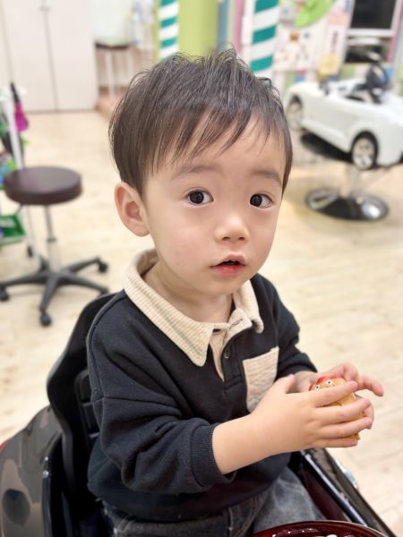 とあくん2さい😊とっても上手にカットさせてくれてありがとう😊👏おかげさまでナチュラルなかわいいショートになりました✨お耳周り、襟足は短め、トップはナチュラルに落ち着く長さにカットしてます💇どんなお子様にもおすすめなスタイルです🙆‍♂️ブログのご協力ありがとうございました😊