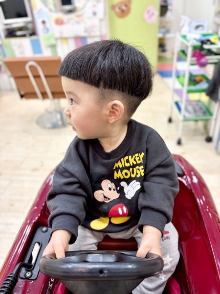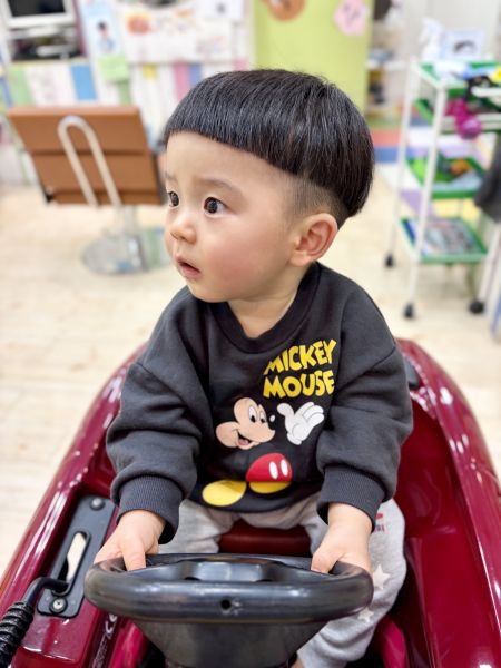 りくとくん1さいさん👶ぐるっと2ブロックにしてぱっつんなマッシュにカットしました💇小さなお子様に大人気なスタイルです😊とっても頑張ってカットしてくれました!!メリハリと丸っこさでとてもかわいくなりました✨ブログのご協力ありがとうございました😊