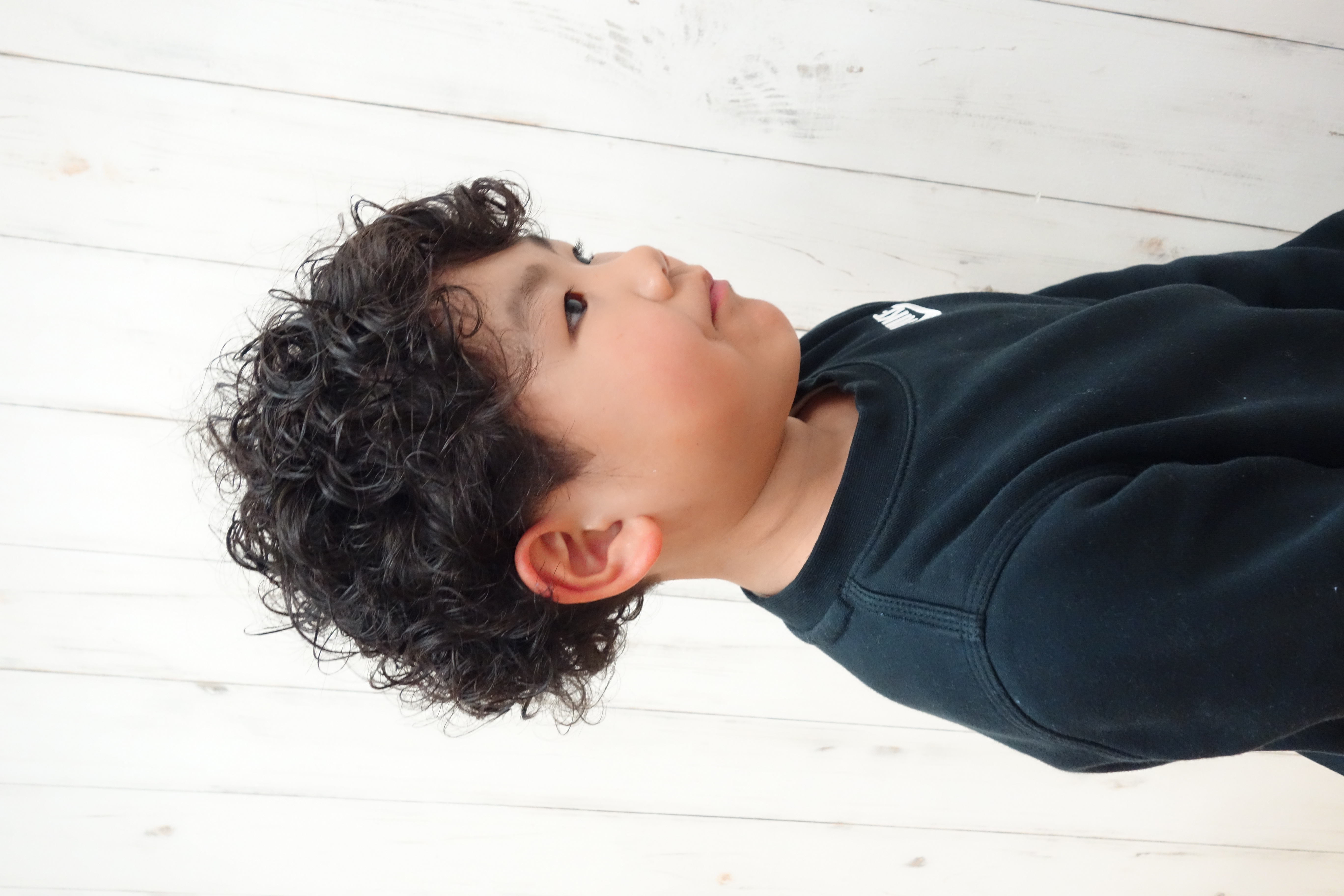 あお君 5歳おしゃれ あお君はお友達がパーマをかけててやりたくて夏から伸ばしてきてくれました本人はロッドも3本ぐらい!で終わると思っていたのに98本(冗談)!!とえ~って途中 涙もありましたがパパママの補佐もありお菓子にゲームに準備して頂きありがとうございました ロッドをはじしたら「わ~スッキリ~きもちいい~」 仕上がりをみて「かっこいい」納得してくれました ありがとうございます