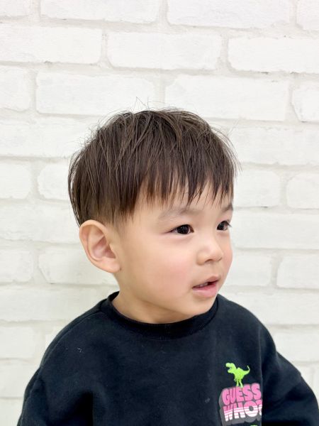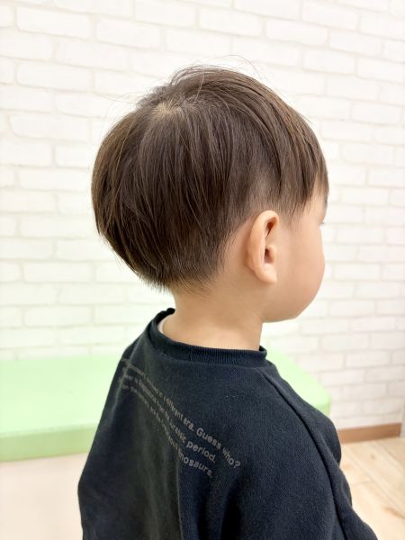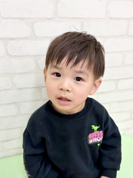 こうやくん2さい✨前回は泣いちゃったみたいですが、今回はとっても上手さんでみんなびっくり‼️お姉ちゃんもとっても面倒見が良くてほのぼのタイムでした😊カットは柔らかく、刈り上げ気味くらいの2ブロックにしてかわいい雰囲気のスタイルにしました😄ちょっとブラウンな髪色とも相まって、とっでかわいいです‼️ブログのご協力ありがとうございました😊