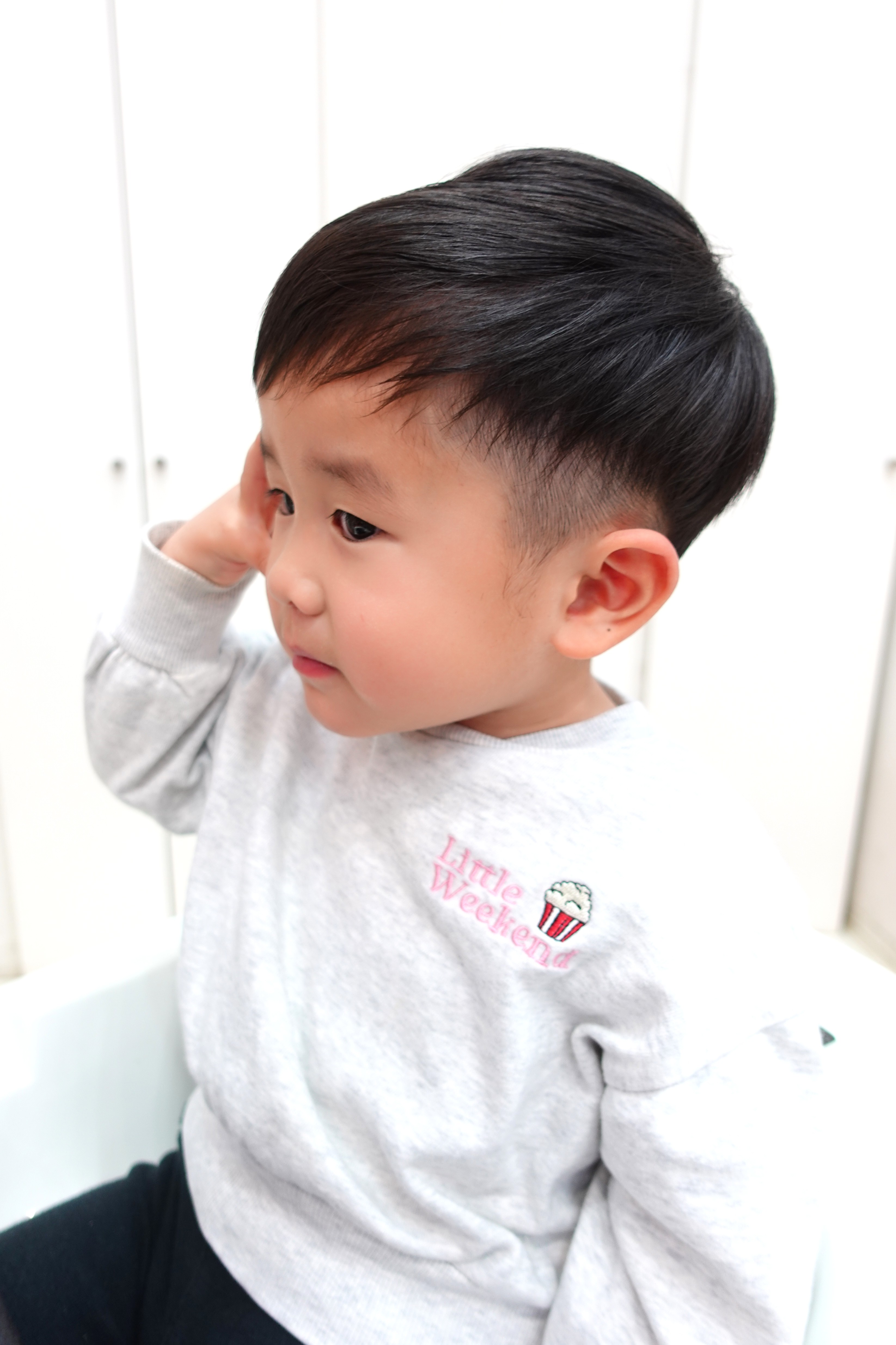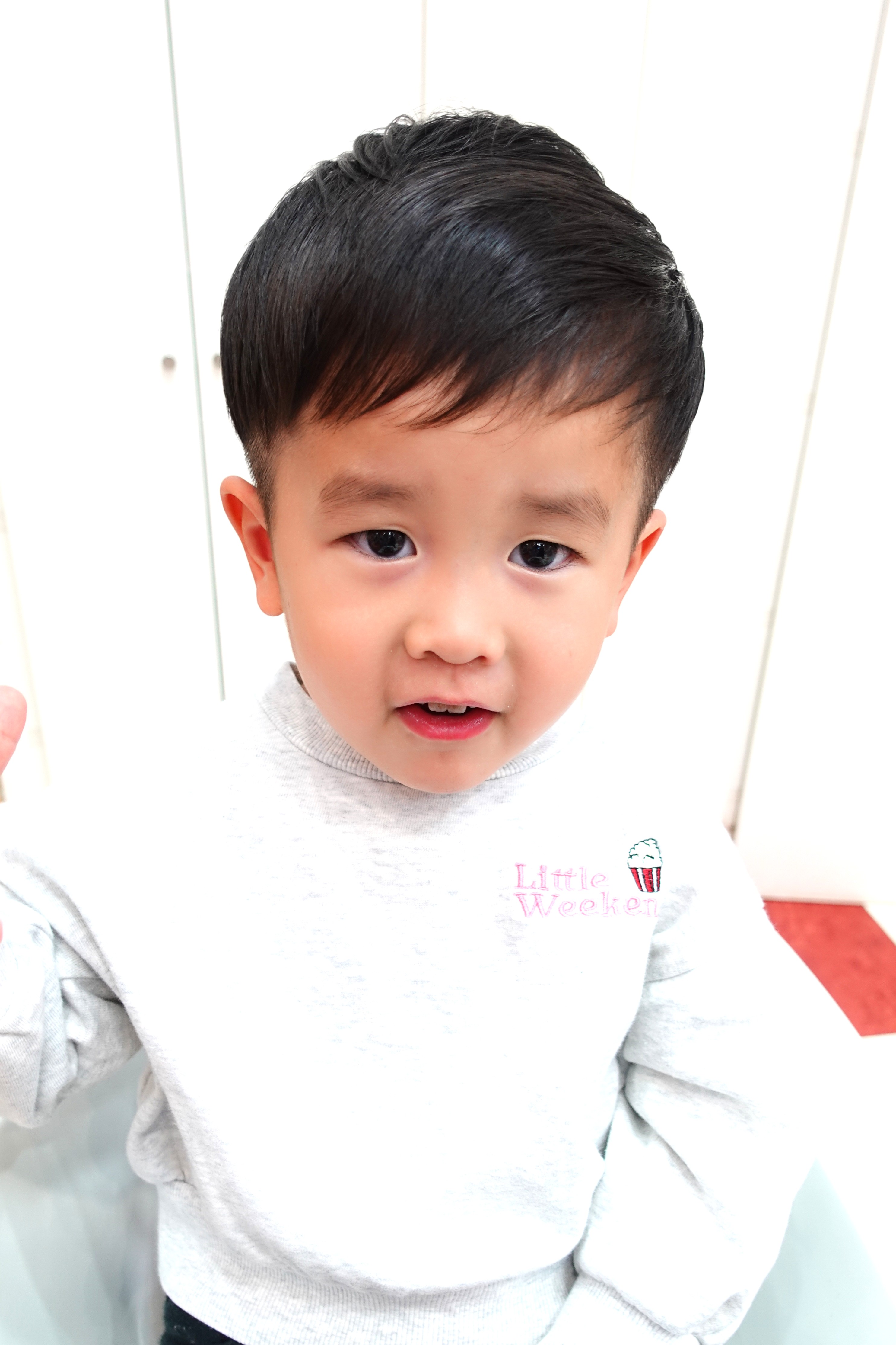 ☆ ゆうま君2才 ☆ 一周ツーブロック刈る所は、ちょっと短め4mm長さですっきりと✨ 前髪はナチュラルに流しておでこバッチリ出してふんわりと お写真のご協力ありがとうございました。 ポーズもバッチリ決めてお写真撮れたね✨