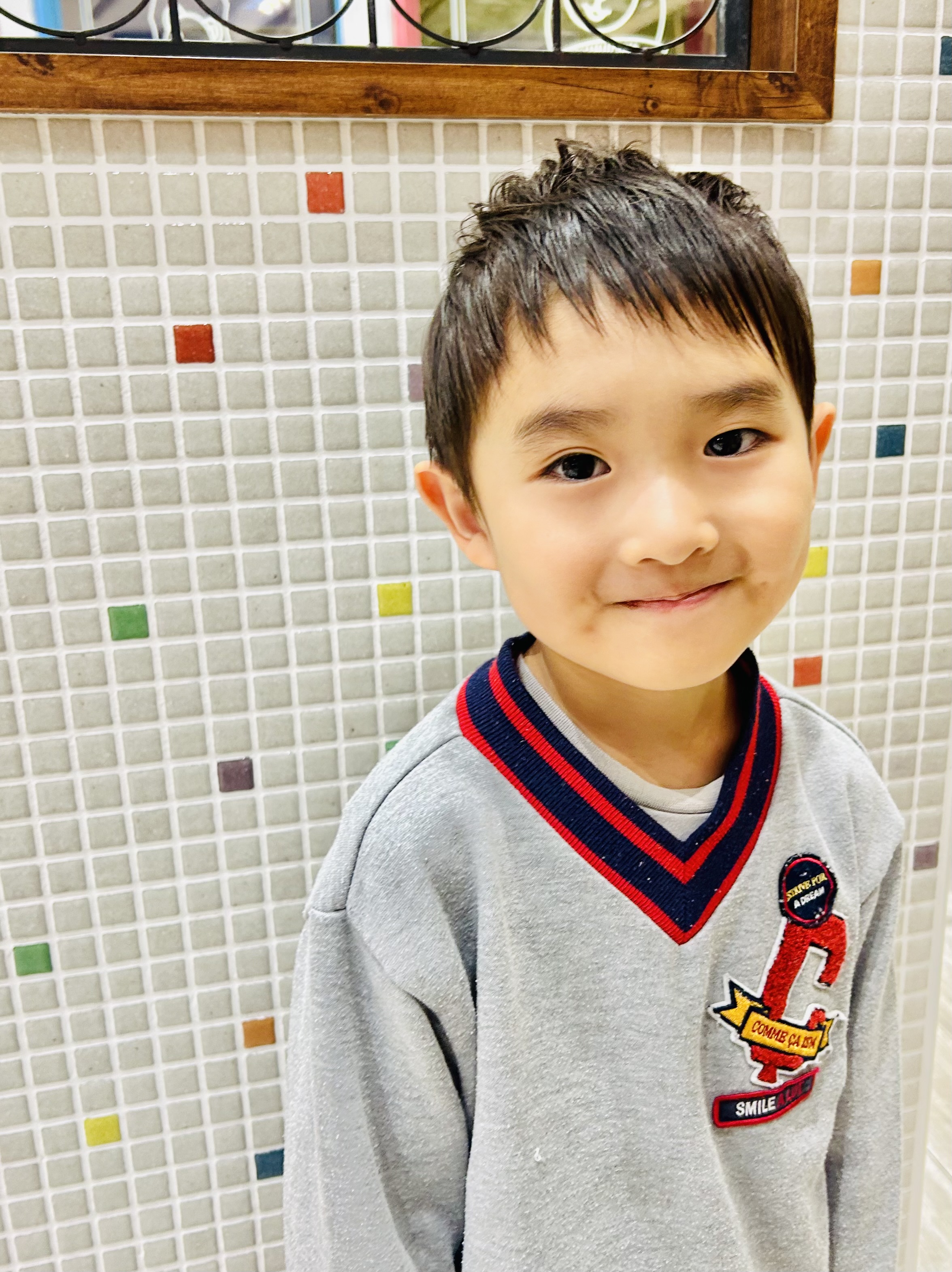 れん君 6歳 今日はれん君のヘアスタイル紹介しますねナチュラルショートスタイルです!ポイントは短めでラウンドが効いたアシメの前髪です!可愛らしさも残しつつ、すそ周りはすっきりと!卒園や入学にぴったりのカッコいいスタイルですれん君は電車のDVD見ながらちょきちょきしましたモデルさんありがとうお父様、ブログのご協力ありがとうございました。またのご来店をお待ちしております。