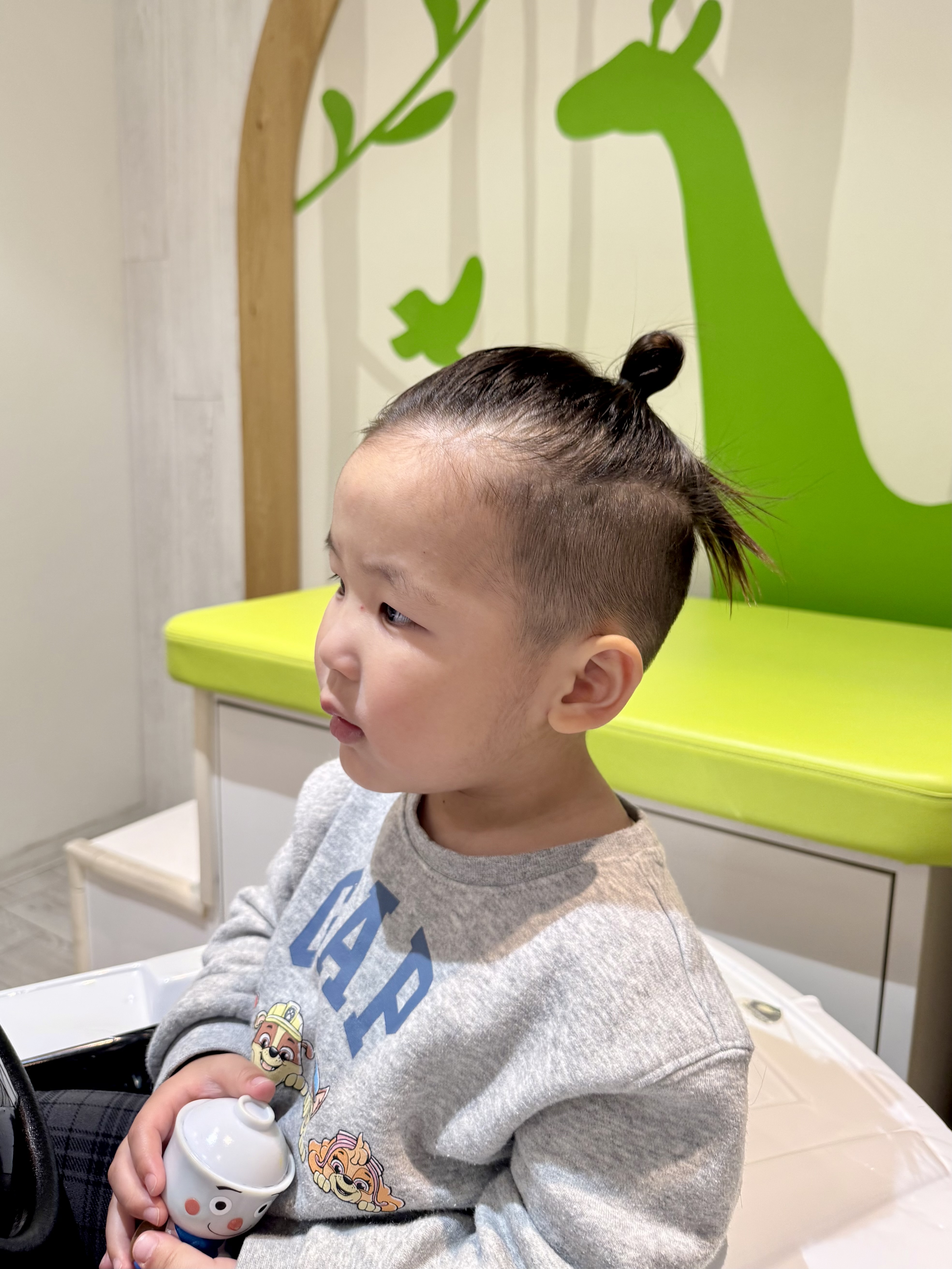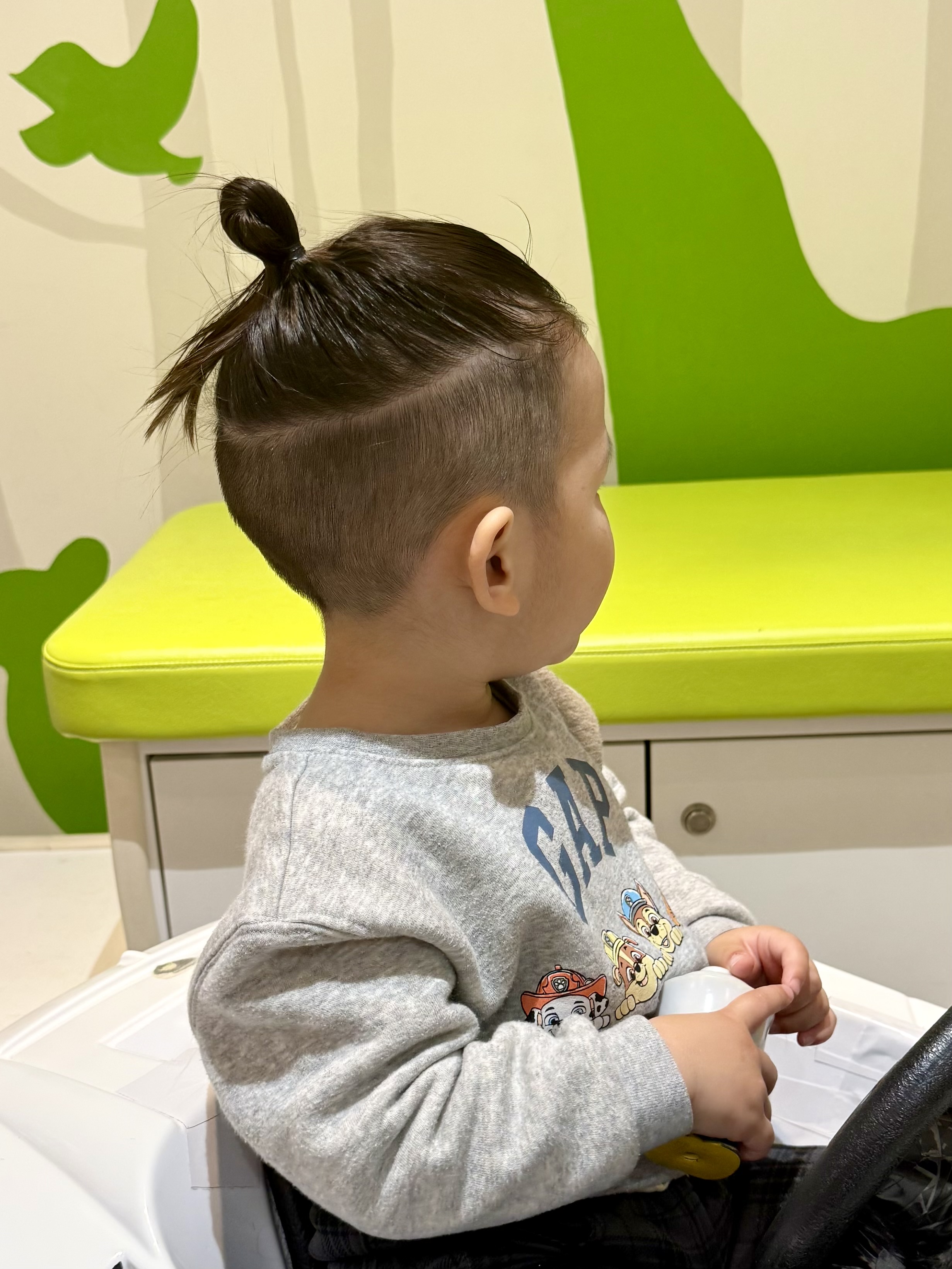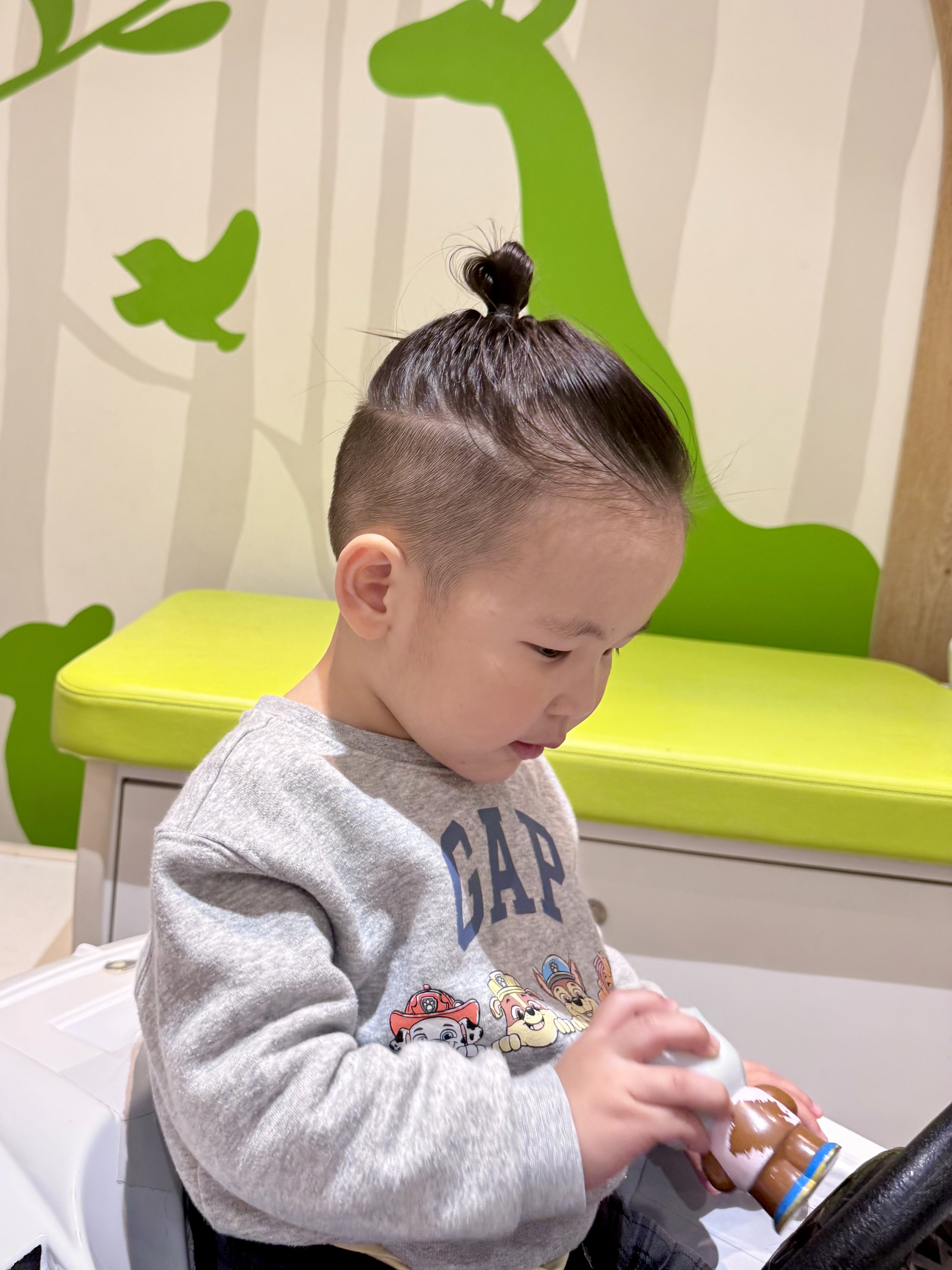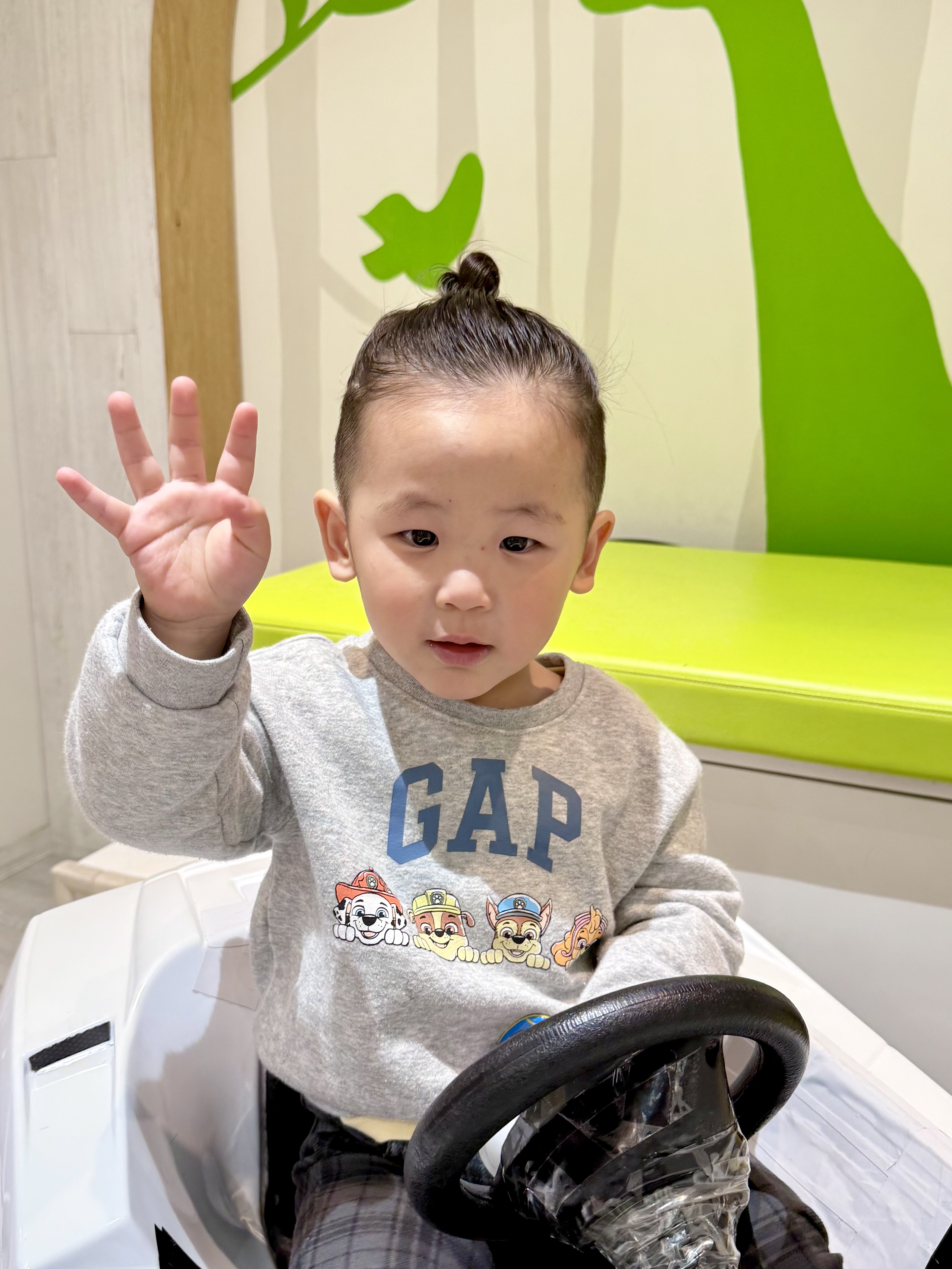 ⭐️男の子⭐️ 初カットでマンバンスタイルに大変身したお子様😆抱っこでおりこうにカットさせてくれました😊最後は車でモデルさん✨とっても似合っていて可愛かったです😍またお待ちしてます⭐︎