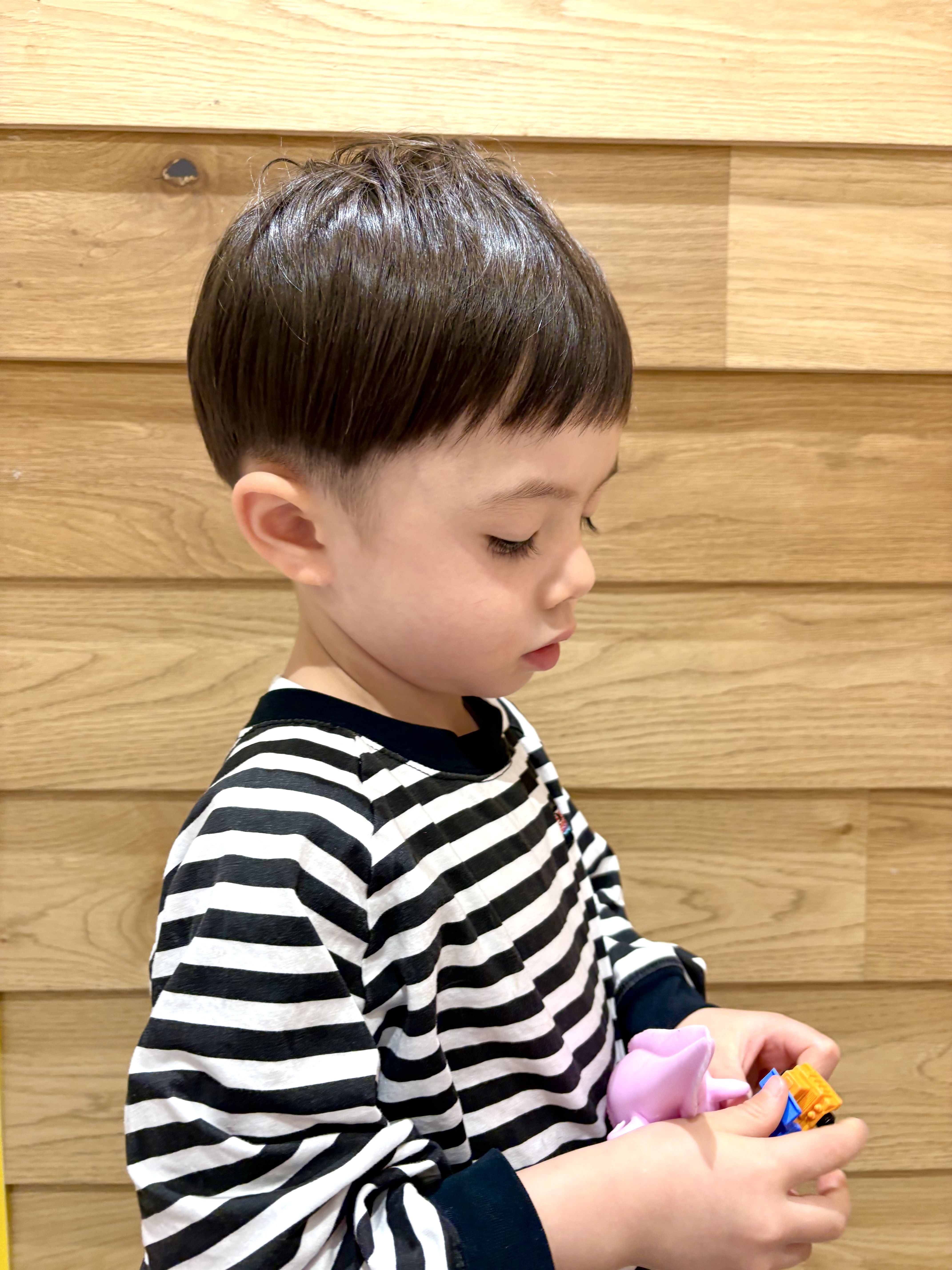 ☀️ 男の子4才 ☀️オモチャで遊びながら上手に髪を切らせてくれたお友達です✨綺麗な髪を生かしてスッキリな丸みのあるシルエットに仕上がりました!とても可愛らしくて写真を撮らせてもらいながら癒されてしまいました😊雰囲気があって素敵ですね!またお待ちしています😉