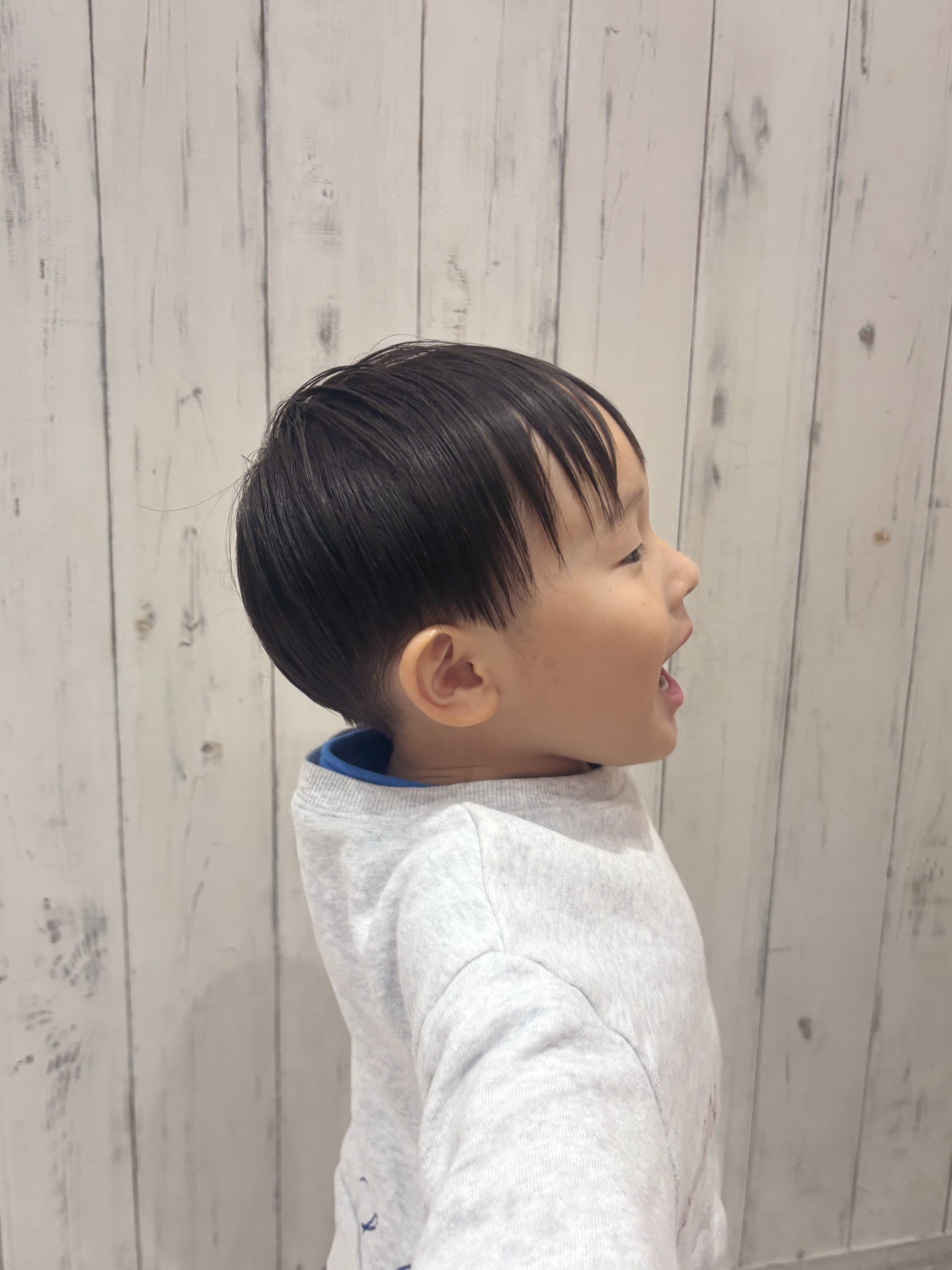 はるせくん 3歳 今回のヘアスタイルは『ツーブロショート』スタイルです✂️サイドは6mmでツーブロック後ろは12-6mmで浅めに刈り上げナチュラルなスッキリショートスタイルです前髪は少し流れるよう絶妙に斜めにカットしました。撮影のご協ありがとうございました😊スタッフ一同またのご来店をお待ちしております☆