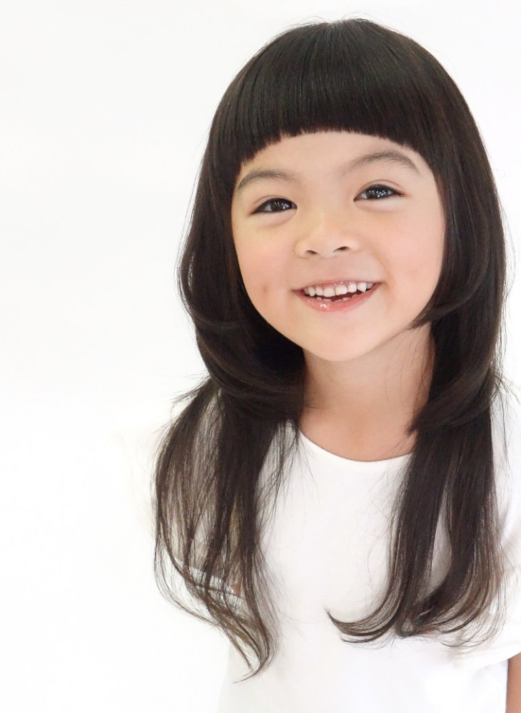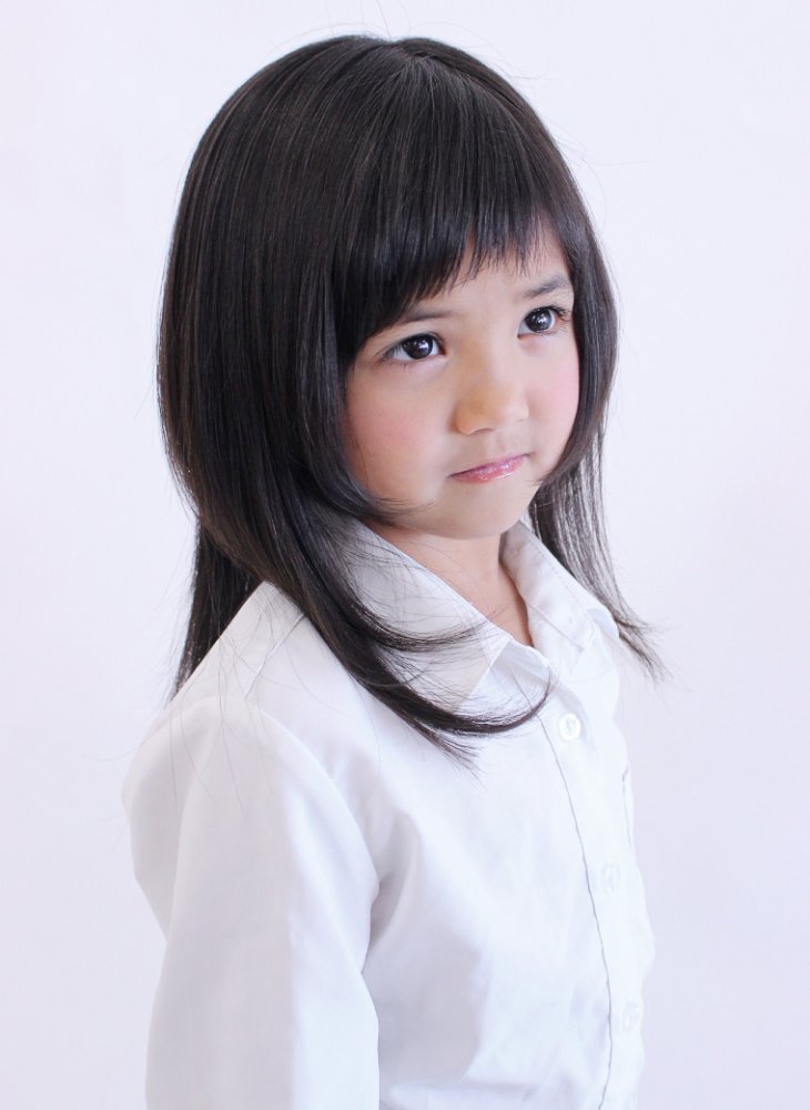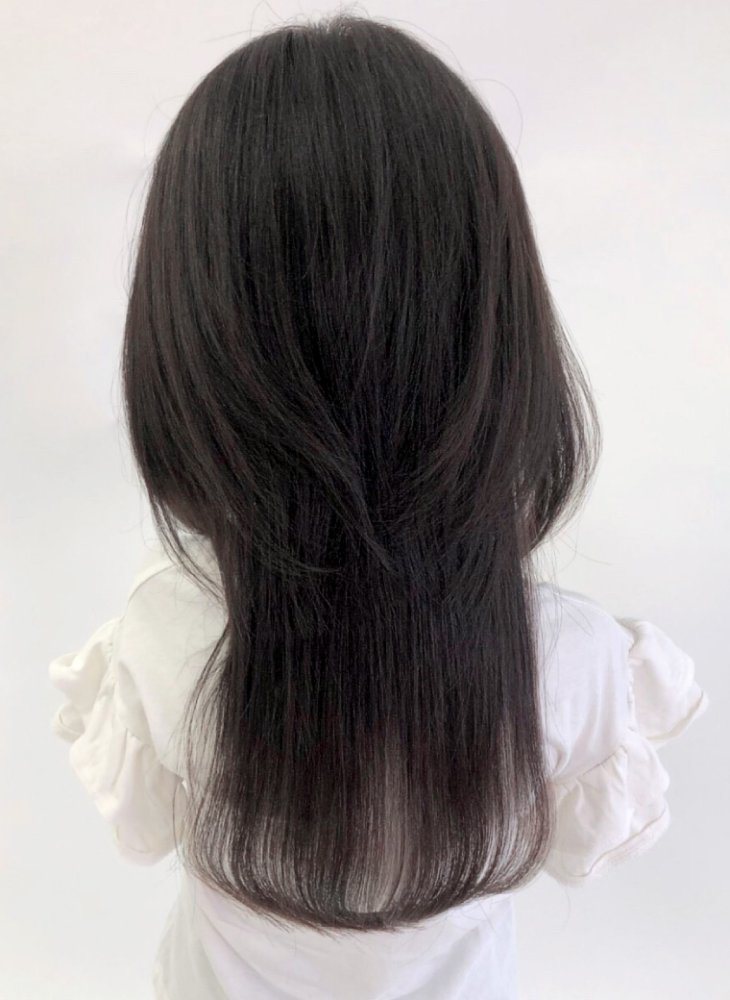 ロングヘアベースの表面に、前下がりのウルフを作り、くびれを強調。顔まわりは束感を作りながらの姫カット!