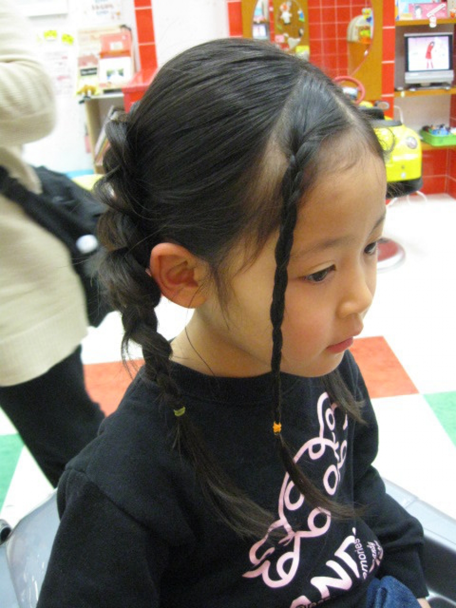 細めのフロントの三つ編みがアクセントに☆