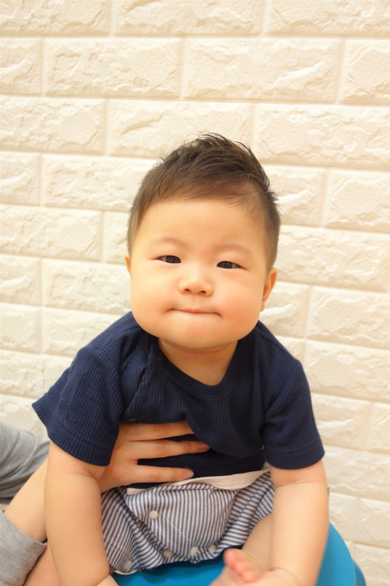 サイド・バックは生え途中のべビちゃんも、フサフサ伸びたトップをクセに合わせてカットすればカッコよくきまっちゃう♪