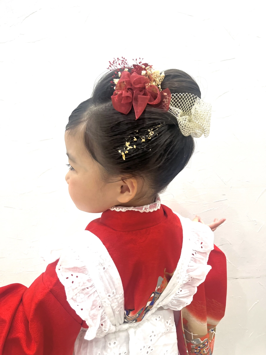 日本髪のアレンジにどの角度から見ても華やかバランスで飾りをつけました。