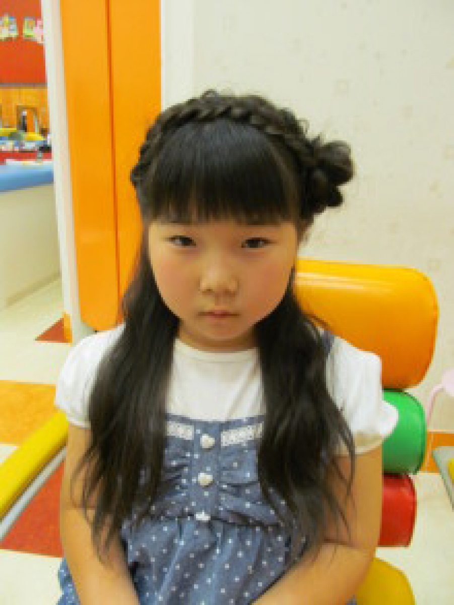 サイドに編みこみ&フィッシュボーンでかわいいカチューシャのように♪